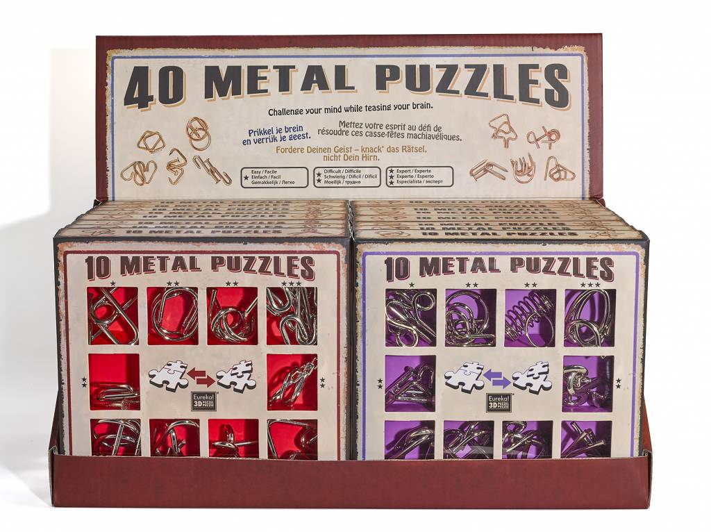 Il existe des coffrets dédiés aux adultes qui regroupent 8 à 10 casse-têtes en métal, avec des formes variées (croix, spirales, anneaux, formes géométriques). Ces sets sont pensés pour offrir un vrai challenge progressif, souvent présentés comme des “brain teasers” de niveau intermédiaire à expert